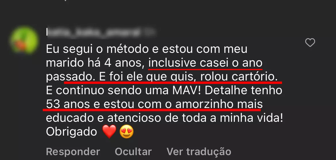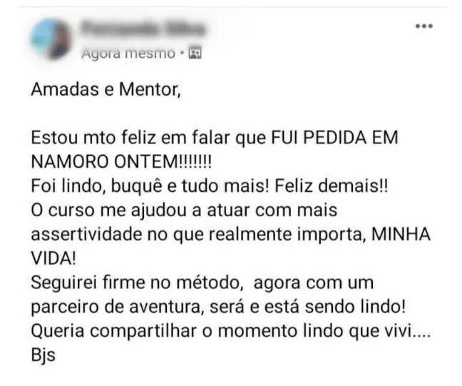 Mais de 20.000 mulheres já passaram pelo método e milhares estão hoje em relacionamentos sérios e felizes.